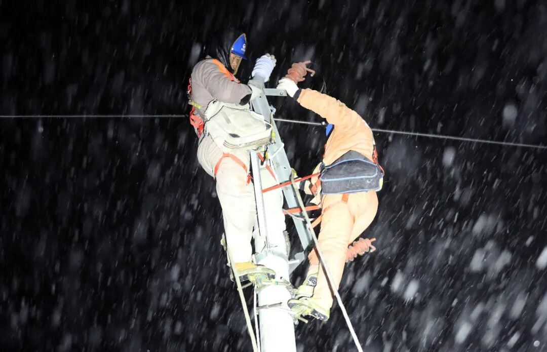 在近期影响全省的强雨雪冰冻天气中,国网江苏电力迅速启动应急响应,依托技术手段与协同机制,全力保障电网运行。特别是在受灾较为严重的连云港灌云等地,国网江苏电力紧急启动“南北结对”支援,从扬州、徐州等地调集300余名抢修人员、近百辆特种车辆,在冰雪中连夜开展抢修。20日凌晨,国网连云港供电公司10名抢修人员来到下车镇唐跳村开展10千伏电杆故障抢修。冒着零下10度的低温和漫天飞雪,抢修人员在应急照明灯的帮助下,争分夺秒开展抢修工作,保障当地居民安全可靠供电。