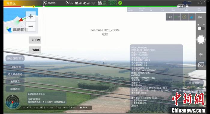中国研发无人机实现跨越黄河巡检输电线路,图为无人机跨越黄河巡检时参数显示情况。中国科学院自动化所 供图