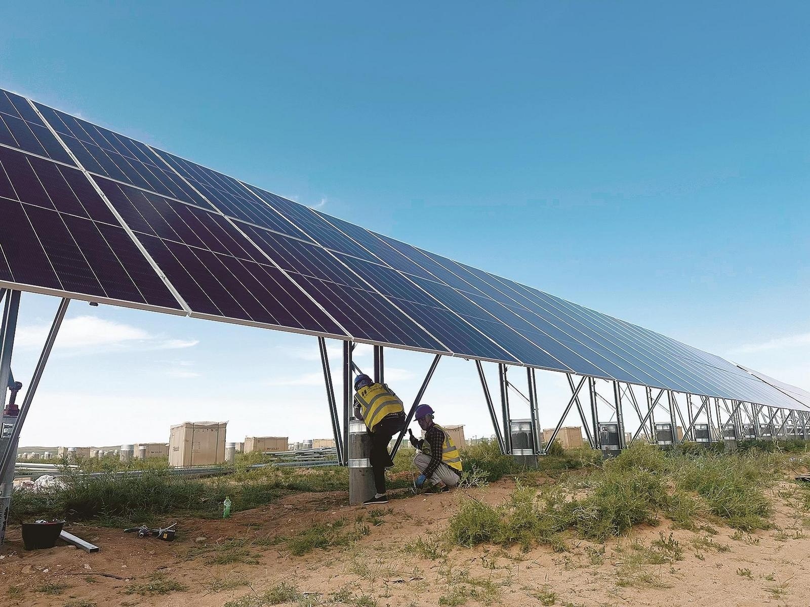 “草光互补”试点项目是达茂旗风光储一体化项目的重要组成部分,总装机容量为5万千瓦。项目作为绿色园区替代项目,建成后将向达茂旗新型工业园区内的通威绿色基材项目提供绿色清洁的能源电力。目前,项目已完成总体进度的55%,预计将于今年9月底实现并网发电。项目投运后,年利用小时数预计可达1700小时,年发电量约8500万度,相当于节约标准煤约3万吨,减排二氧化碳约9万吨,显著提升“碳减排”效益。
