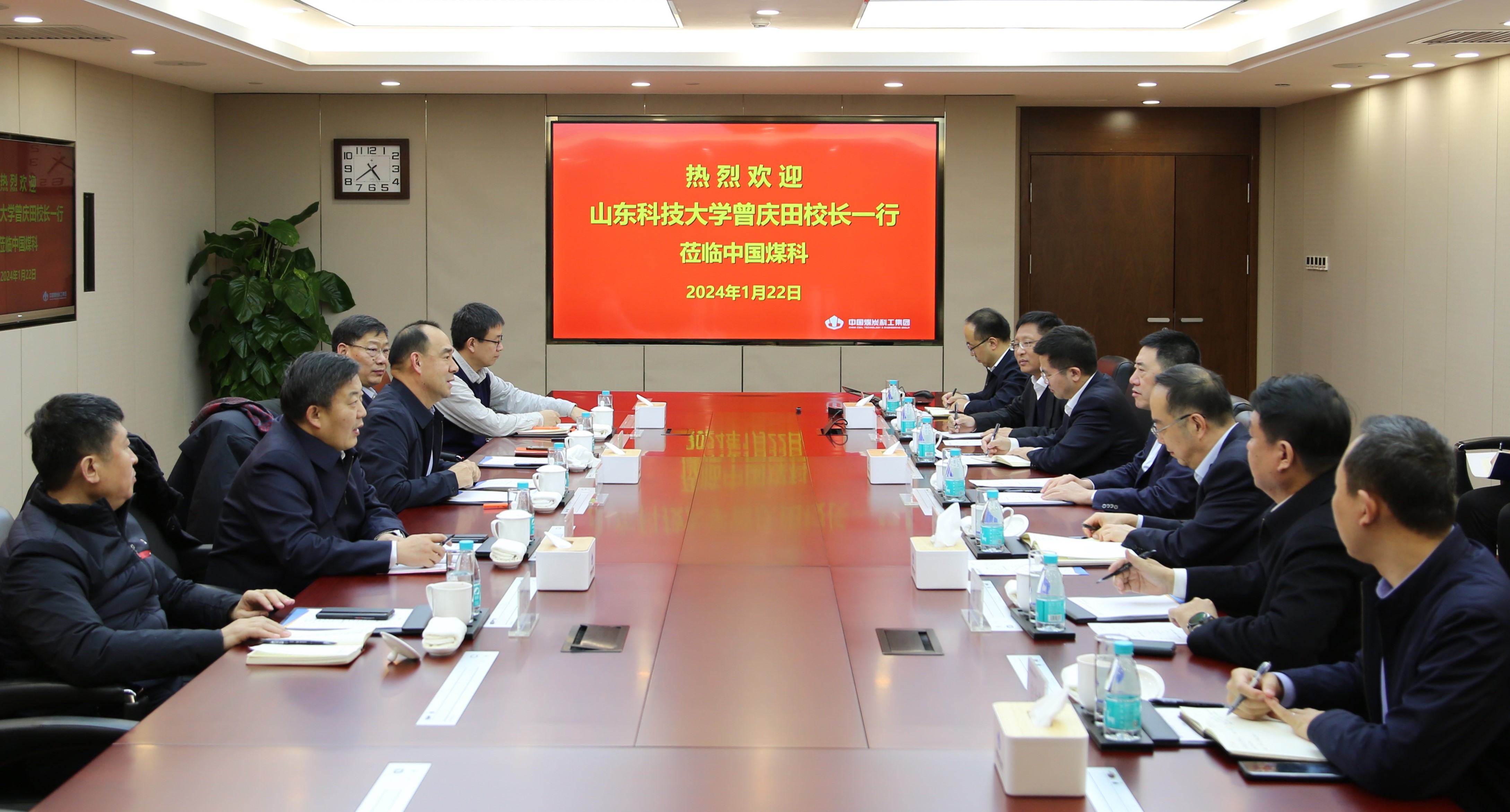 1月22日,山东科技大学校长曾庆田一行到访中国煤科,双方就科技创新、人才培养、科研平台建设等领域合作进行座谈交流。山东科技大学党委常委、副校长诸葛福民,党委办公室主任董桂刚、科技处处长陈绍杰、合作发展处处长王晓东;中国煤科党委书记、董事长胡善亭,党委常委、总会计师赵寿森,党委常委、副总经理刘见中等参加会议。