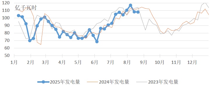 截至8月21日,纳入统计的发电集团燃煤电厂本月累计发电量同比下降1.1%,本年累计发电量同比下降3.4%。燃煤电厂耗煤量本月累计同比下降2.2%,本年累计同比下降4.2%。燃煤电厂煤炭库存高于去年同期287.4万吨,库存可用天数高于上年同期0.9天。