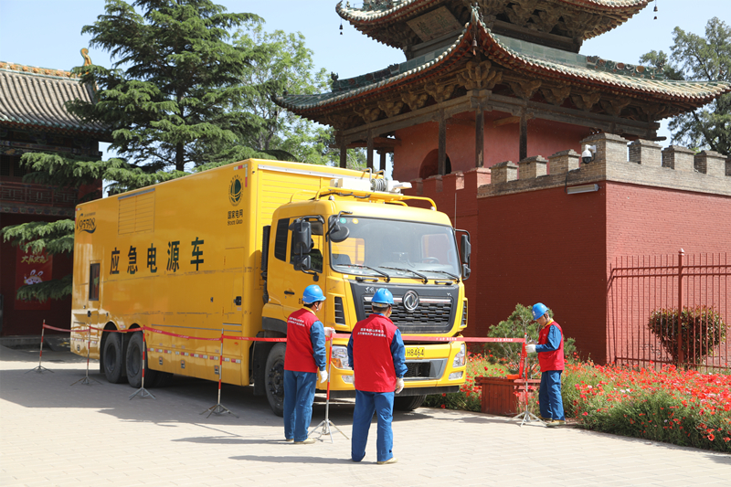 国网山西运城盐湖区供电公司在关帝庙景区派出应急电源车驻守现场。