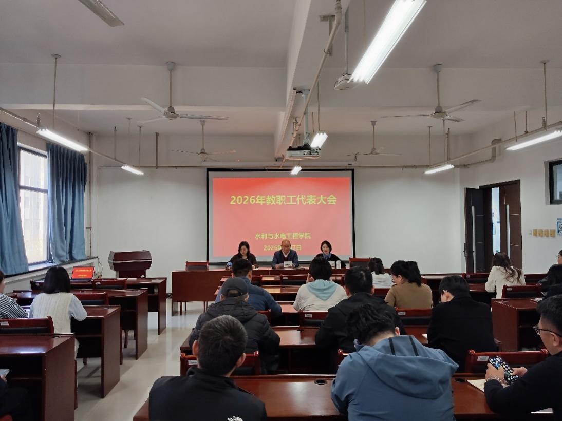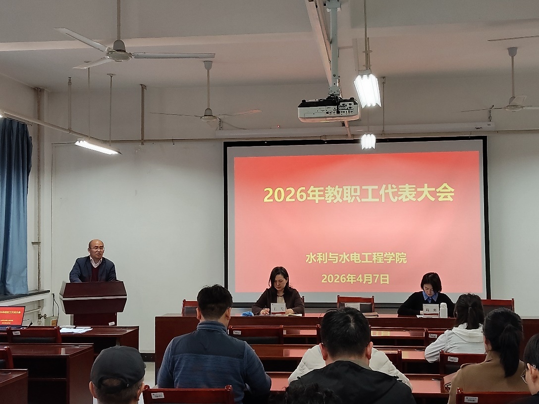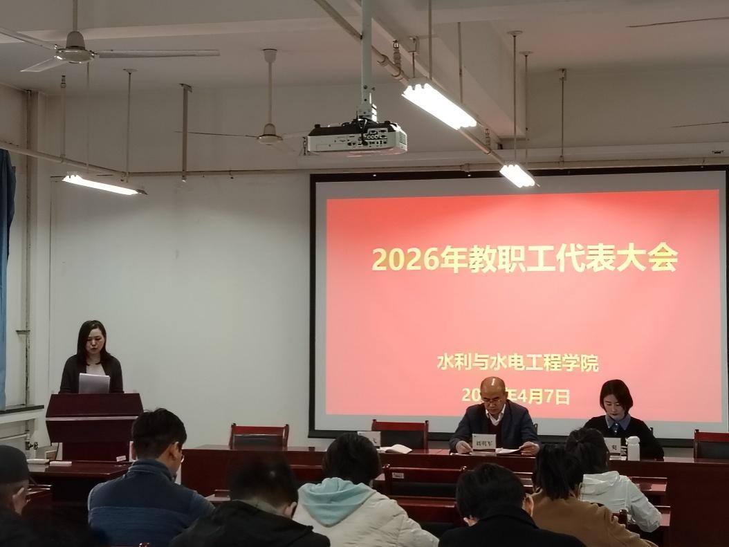 4月7日下午,水利与水电工程学院召开了2026年教职工代表大会。全体院领导和教职工参加会议,会议由学院党委副书记、工会主席周爽主持。
