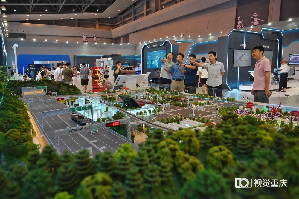9月6日,重庆国际博览中心,2023中国国际智能产业博览会现场,市民正在观看两江新区国家级车联网先导区模型展示。记者刘旖旎摄/视觉重庆