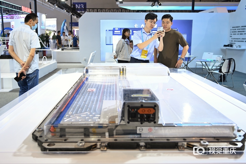 9月6日,重庆国际博览中心,2023中国国际智能产业博览会现场,市民正在参观新能源汽车电池。记者刘旖旎摄/视觉重庆