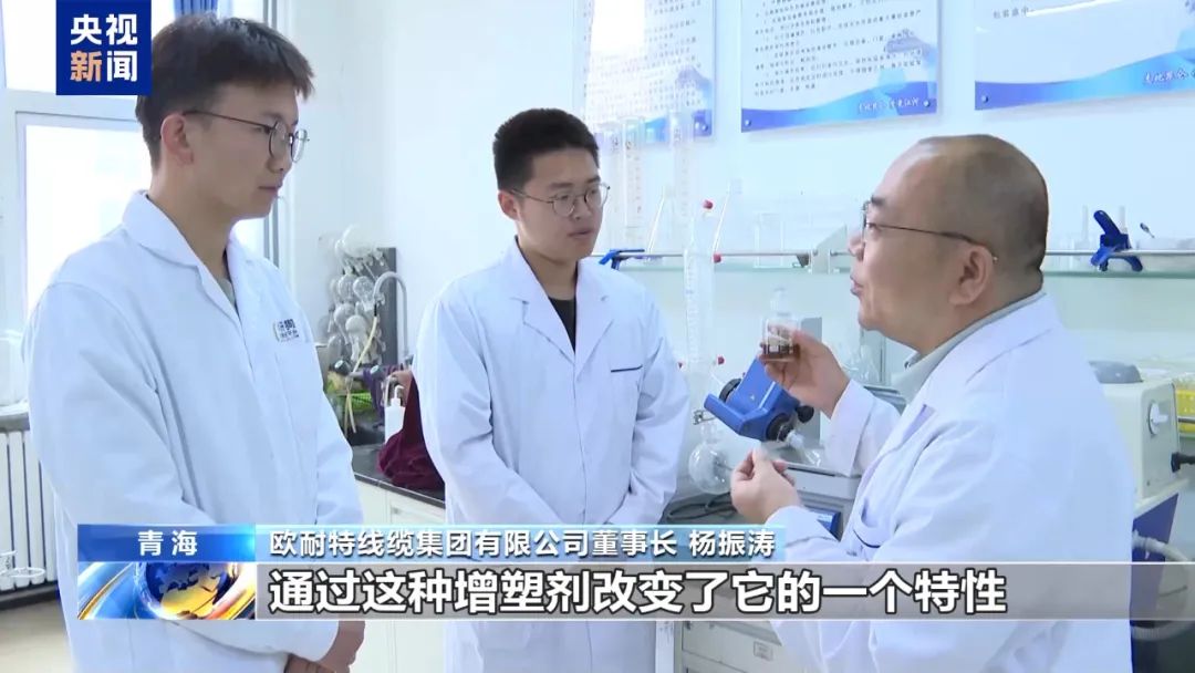 欧耐特线缆集团有限公司董事长 杨振涛:零下30℃的天气,电缆的施工就是一个难题,因为太硬了。我们从大豆油、菜籽油里提炼出来一种生物增塑剂,通过这种增塑剂改变了它的特性,增加了它的柔软度,施工更容易更方便。