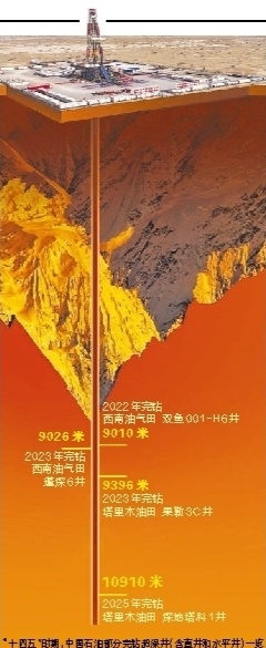2025年,我国首口超万米科探井——深地塔科1井于地下10910米处完钻,成为当时亚洲第一、世界第二垂深井,圆满完成科学探索和发现油气两大任务,成为我国继“深空”“深海”之后在“深地”领域取得的又一重大突破,标志着我国成为全球具备万米钻探能力的国家。