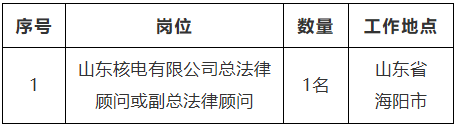 根据工作需要和相关制度规定,山东核电有限公司现就公司总法律顾问岗位面向全社会进行公开招聘。岗位如下: