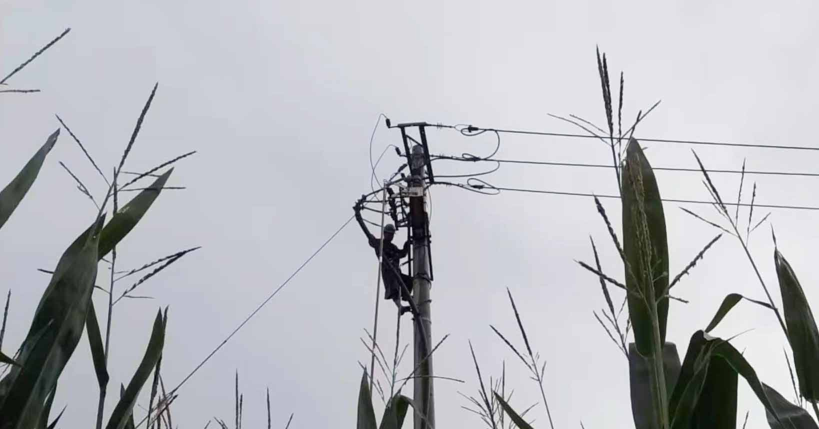根据现场勘查情况,该公司制定有序巡线抢修计划,思考着怎样才能既保证抢修过程安全,符合一系列操作规程,又尽快为用户通电,减少停电时间,待雨势稍弱开始进行复电抢修。这个季节正值玉米农作物生长最旺盛时期,由于很多杆塔都在玉米地里,为抢险工作增加了难度,为了尽快给老百姓恢复供电,车辆无法驶入,抢修人员只能徒步穿过密密麻麻的玉米地,历经5个多小时的冒雨跋涉后,终于查找到事故点,抢修人员随即对受损的线路设备进行了登检,由于受损设备需要经过电气试验,无法在当时完成,不具备作业条件,但为了停电区域的居民天黑之前都能恢复用电,该公司决定由10kV乌营线转带故障线路负荷,减少停电时间,暂时保障居民生活能够恢复正常。待次日具备作业条件,再恢复全部供电。根据工作计划,大伙儿各司其职,有序分工协同,在抢修的过程中每一名工作人员技术都十分的熟练绝不拖泥带水。即使在穿越玉米地过程中叶子划伤脸颊也毫无怨言。