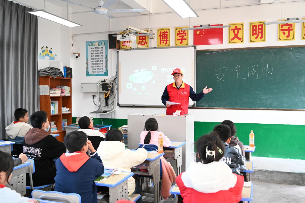 “同学们,电是怎么产生的?如何用电才是安全的呢”“电给生活带来变化的同时,不正确使用也会给人造成伤害。”在电力课堂上,青年志愿者运用国网“电力爱心教室”标准化课件,结合山区雷电天气等特点,通过场景展示、动画视频、快问快答等多种形式,利用红外测温仪、无人机等道具,向同学们讲解了安全用电、生活中如何节约用电等基本知识,让同学们在趣味学习中增强安全用电意识,提高了规避用电风险的能力。