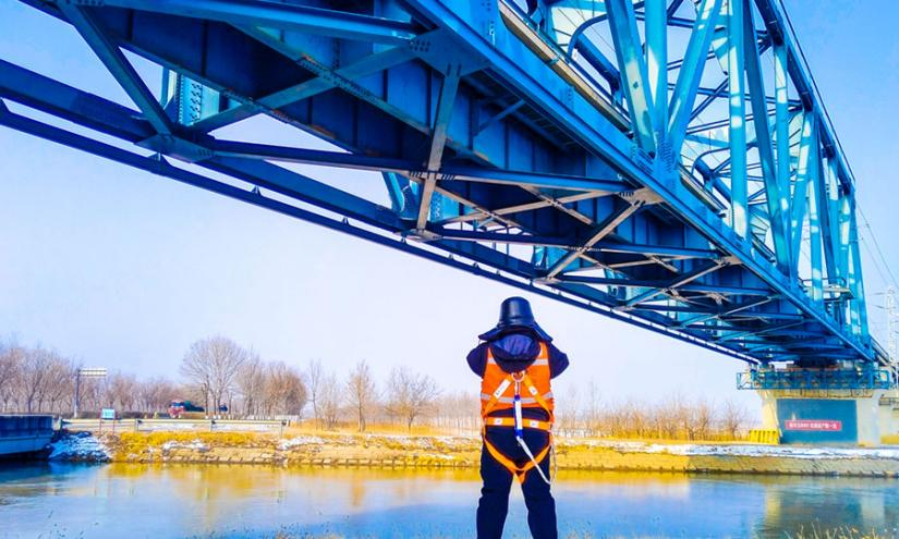1月16日,朔黄铁路滨城中心桥梁专业对管内钢架桥梁进行巡视检测,及时排查受极寒天气影响桥梁裂痕、螺栓松脱等情况的发生。李铸珅 摄
