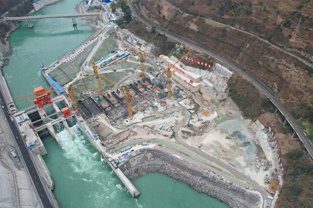 大渡河沙坪一级水电站建设现场。