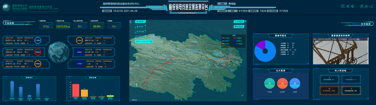 项目针对青海高海拔、高原地区的运行特征,安装设备涵盖通道可视化、状态监测等各类监测场景,实现对输电线路可视化及状态实时监测,显著提高监测效率,降低运维费用,自省级输电全景监控平台上线以来,已准确识别出外破、鸟窝、烟雾等异常情况上百次。