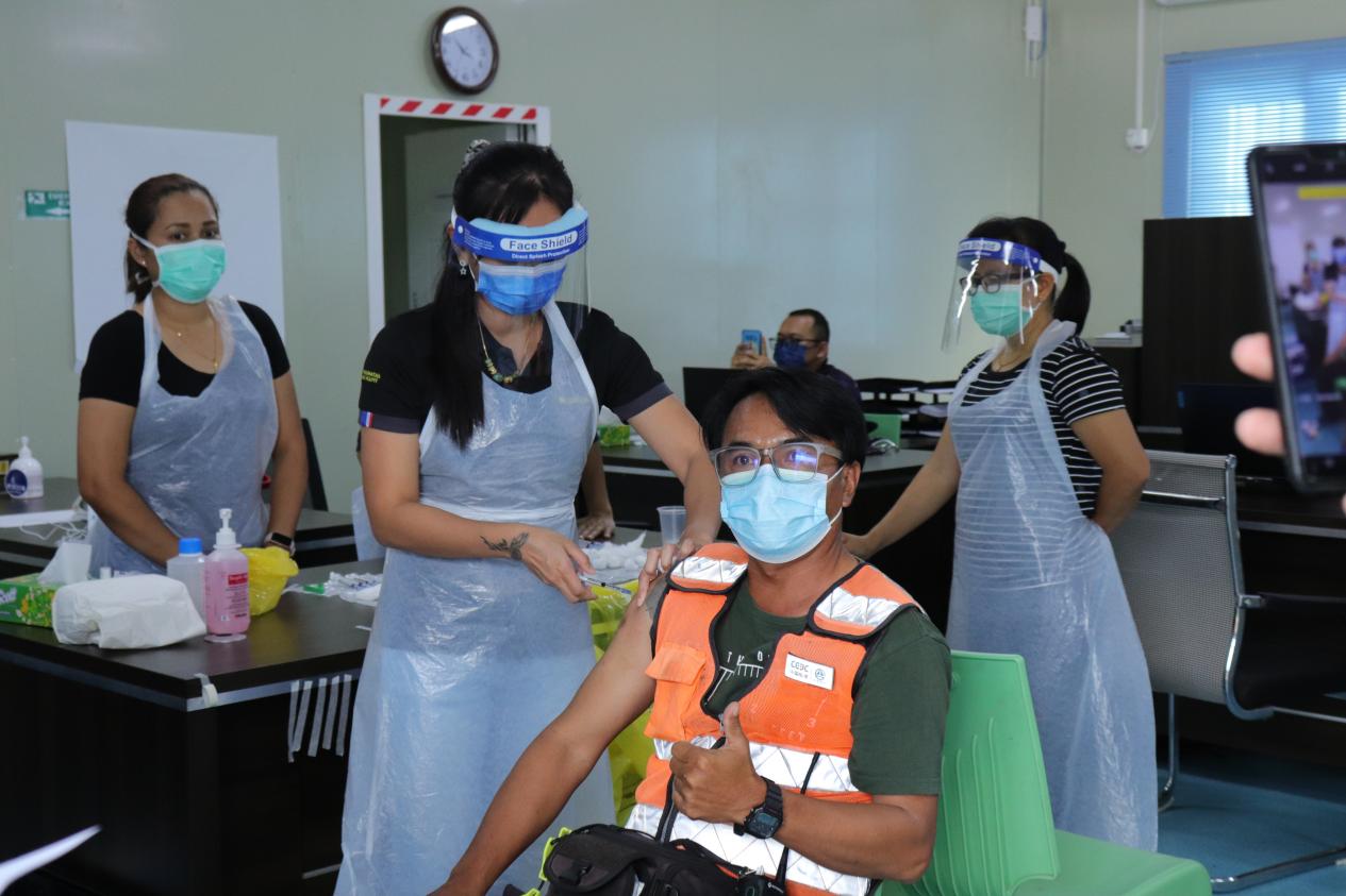 此外,项目部还在增加当地就业方面发挥了积极作用。为解决疫情期间居民失业问题,2021年8月,中资企业在东马建立的首家专设招聘办公室——项目部加帛招聘中心挂牌成立,累计为当地居民提供含行政后勤、测量、安全等就业岗位300余个。居民在项目部工作期间,不仅接受了由项目部组织开展的各类培训,提升了专业知识,还在疫情肆虐的当下获得宝贵的疫苗接种,极大增强了员工的认同感和获得感。