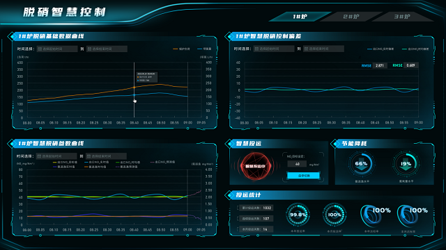 基于领先的研发实力与多年行业经验,结合电厂数字化发展中的痛点与需求,浙江浩普积极开展能源清洁高效利用方面的关键技术研发与实践。2018年,首套智慧环保岛系统在电厂成功运行,实现了对电厂脱硝、脱硫、除尘的协同优化控制,保障设备了在负荷和污染物浓度波动变化的情况下实现安全平稳生产。应用结果显示,智慧环保岛系统投运后,实现了对环保岛系统的智能化控制,可有效降低氨水耗量10%至25%,循环泵能耗20%至30%,除尘系统能耗10%至40%,确保烟气污染物排放100%达标。