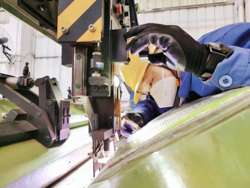 生产车间内,机器轰鸣,却少闻人声,几名员工正聚精会神地操作着机械胀形机。操作工康民说:“现在一个人动动手指头,筒体就撑好了,不用再来回安拆模具了。”