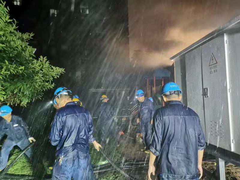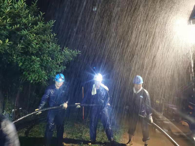 凌晨4点,雨渐渐小了下来,抢修工作还在继续着! (曹刚 王宇琪 郭松灵)