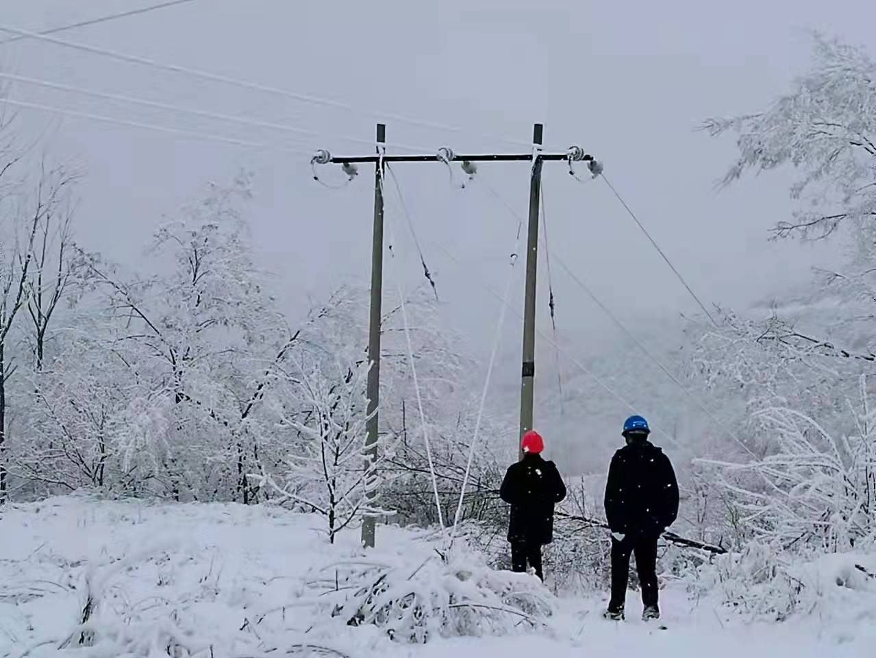 清晨8时,输电运检中心巡视人员按照既定的巡视方案和巡视内容,对重要输电线路、往年易发生覆冰区域进行巡视,仔细检查线路覆冰、导线弧垂、杆塔是否存在隐患等问题。山路难行,供电人员相互搀扶前行,大家的脸被刮得通红,眉毛上结了一层冰,手冻得不听使唤,鞋子早已湿透,他们仍咬牙坚持,边观测边记录,不放过一处可能出现的隐患。