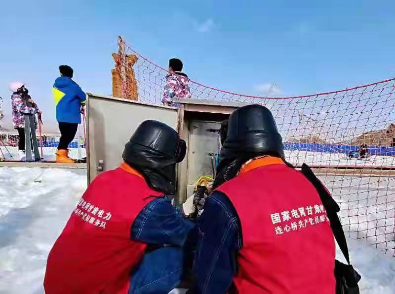 激增的游客造成雪场造雪机、魔毯、供暖等电力设备的用电负荷不断攀升,为了确保滑雪场正常用电,国家电网甘肃电力连心桥(白银会师)共产党员服务队的队员们,协助雪场完成配电室、发电机、造雪机等电力设备的安全隐患排查,对所涉及的供电线路和配变进行特巡,全面掌握线路和设备运行状况,确保滑雪场电力供应充足、稳定。