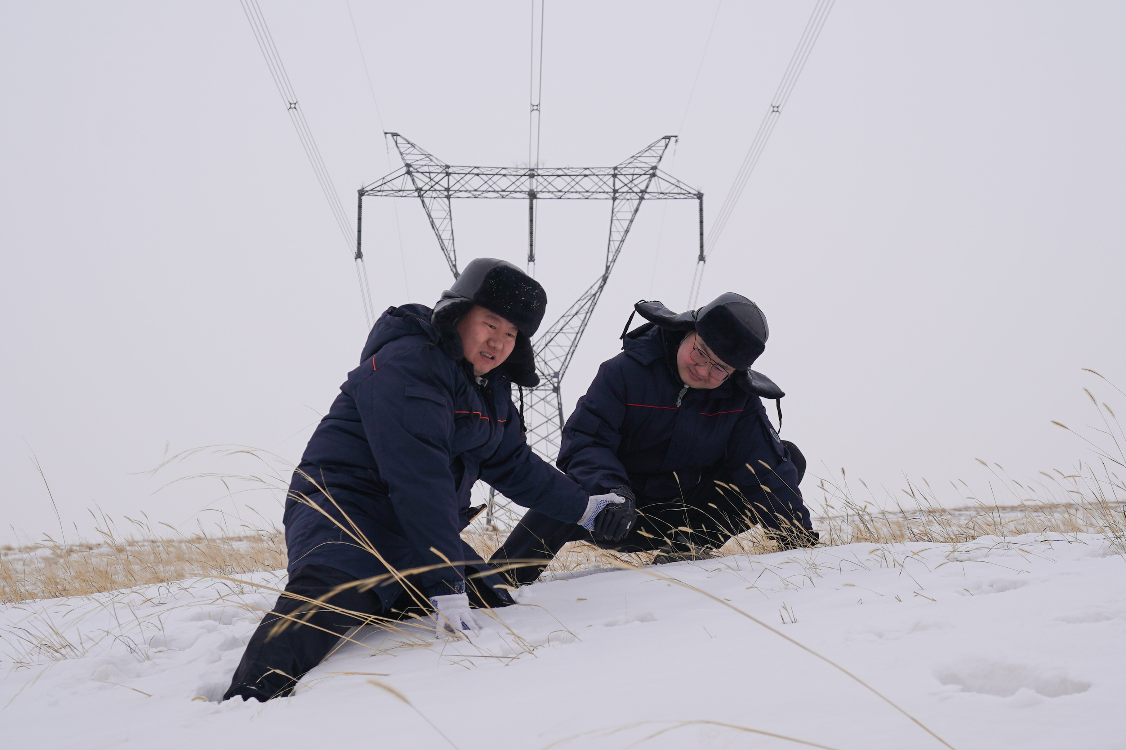 在风雪中,身穿棉衣的保电人看上去都像一个个“冰墩墩”,让我们一起为冬奥会护航喝彩吧。