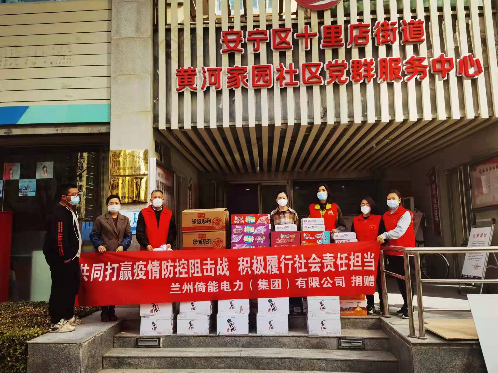 中国电力新闻网讯 通讯员 高卫 牛晓军 报道 众志成城,抗疫必胜。面对严峻的疫情防控形势,3月12日,兰州倚能电力集团相关人员前往安宁区黄河家园社区,向志愿者服务队捐赠抗疫食品,以实际行动支持疫情防控工作,助力黄河家园社区织密疫情防控网。