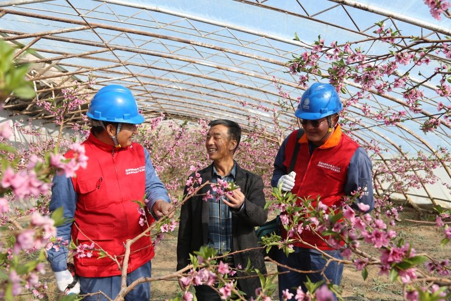 大棚内,百株桃树争奇斗艳,竞相开放,人面桃花相辉映,将高原春日里第一抹花香弥漫开来。为满足山庄用电需求,国网海西供电公司主动服务,共计为山庄新建和改造10千伏线路14.92千米,保障特色农业产业用户用上满意电、放心电。