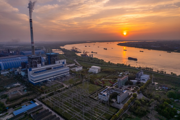 图为位于长江沿岸的安徽铜陵电厂侧面图