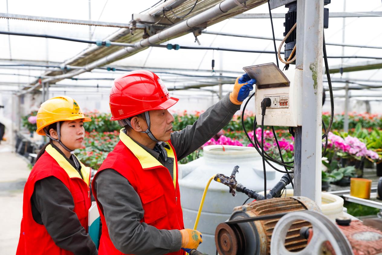 中国能源新闻网讯(张若棋 陈妍宏)1月29日,国网浙江电力(德清)红船共产党员服务队队员来到浙江德清加州农业股份有限公司的年宵花生产基地,上门开展用电安全检查,确保温室大棚内各类设施运行稳定,为年宵花的茁壮生长和畅销提供可靠电力保障。
