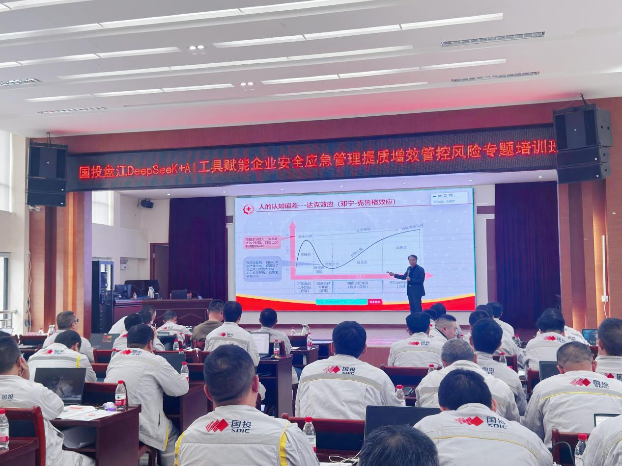中国能源新闻网讯(古右竹 )为主动响应企业数字化转型要求,以技术创新破解安全管理痛点,10月28日至29日,国投盘江主办的《DeepSeek+AI工具赋能企业安全应急管理提质增效管控风险》专题培训班,在职工礼堂圆满落幕。此次培训不仅是国投盘江强化内部安全管理能力、培育数字化复合型人才的关键行动,更以“打破资源壁垒、共育区域人才”为导向,联动国投贵州新能源有限公司共同参与,90余名学员线下集中参训、20余人通过“数字国投”线上同步学习,切实将优质培训资源辐射区域兄弟单位,彰显国投盘江在区域协同发展中的国企担当。