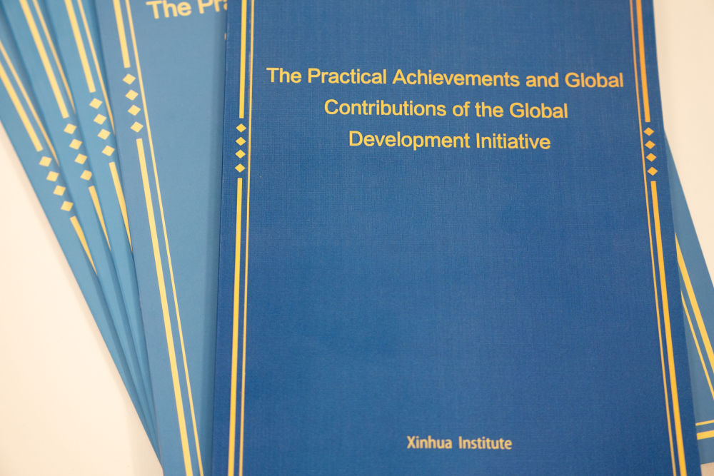 这是9月19日在美国纽约联合国拍摄的《全球发展倡议实践成就与世界贡献》智库报告。新华社记者刘杰摄
