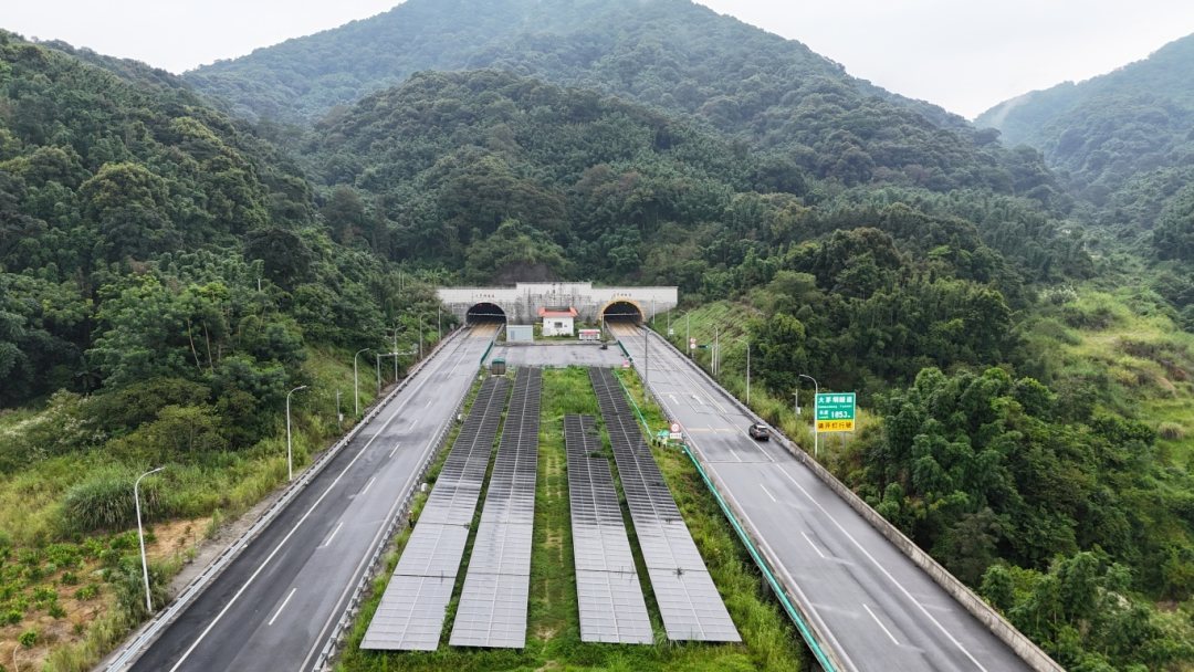 大塘至浦北段高速公路交能融合示范项目I标段位于清凭高速浦北至大塘段,沿线建设边坡光伏、绿化带平地光伏、车棚光伏及屋面光伏。光伏建设总容量为23.342兆瓦,预计年均发电量约2271万千瓦时,相当于节约标煤约6860吨,减少二氧化碳排放约18719吨。