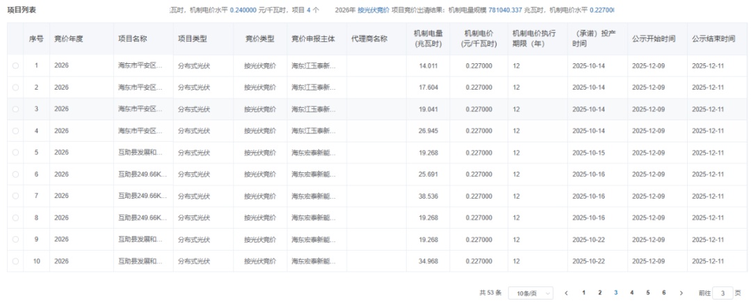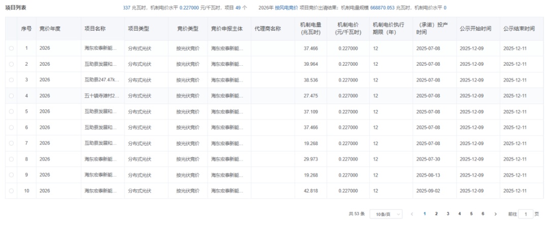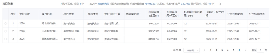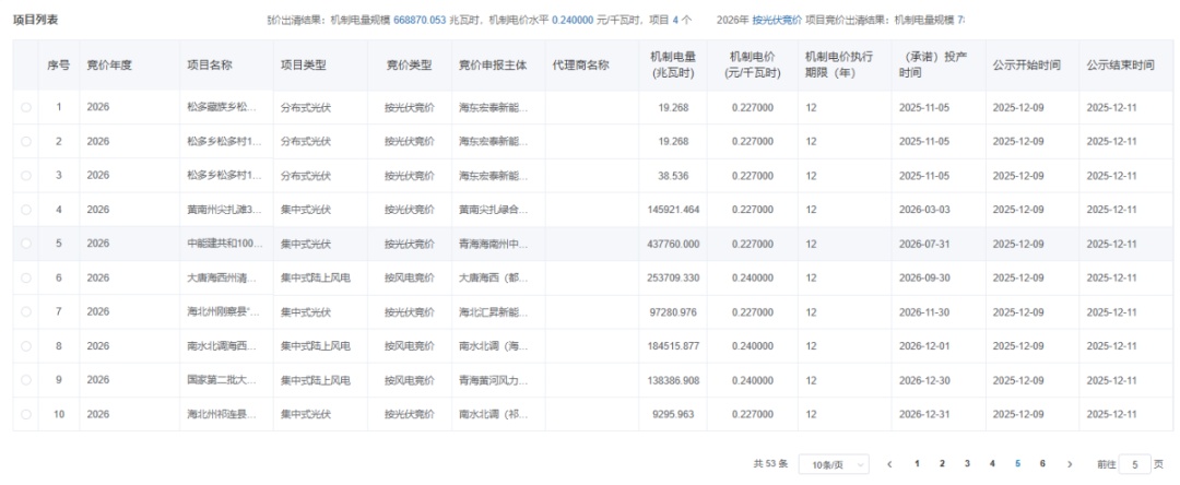12月9日,青海公示2026年青海省新能源机制电价竞价结果。