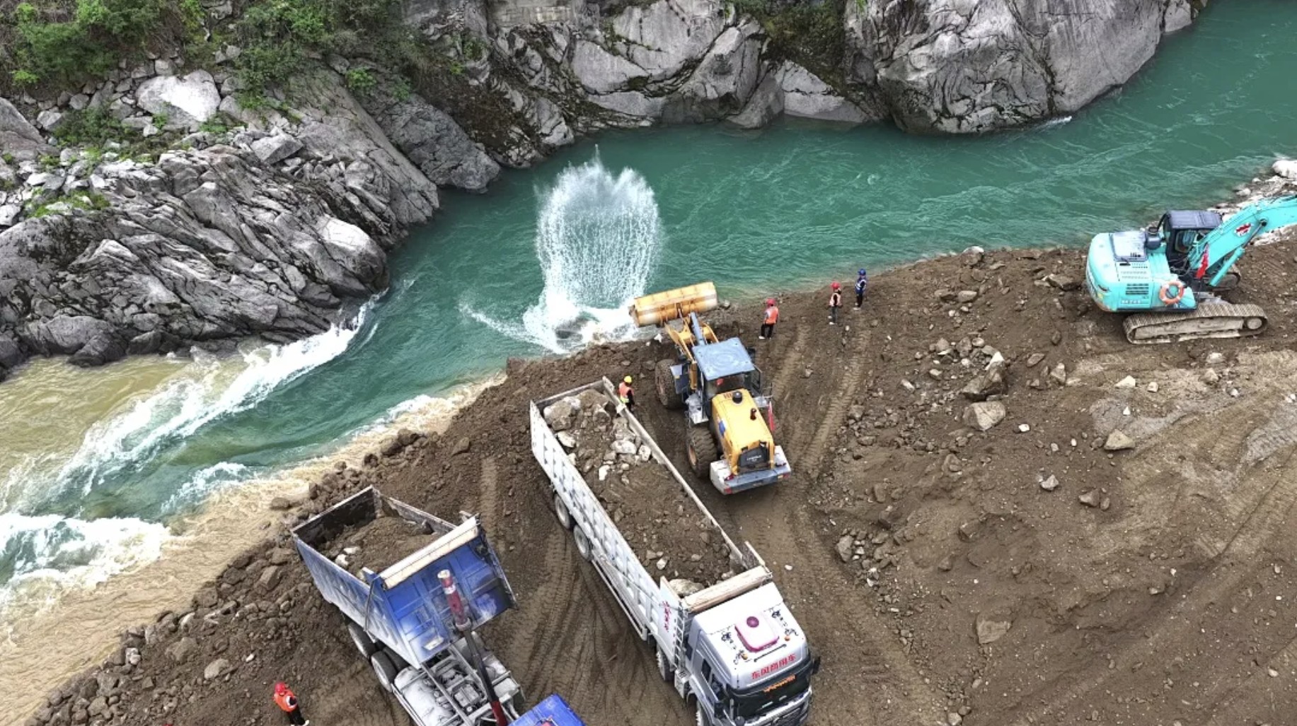湍急河水被拦腰斩断