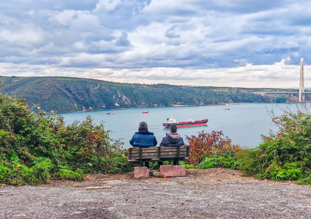 10月19日,人们在土耳其伊斯坦布尔博斯普鲁斯海峡岸边休闲(手机照片)。新华社记者刘磊摄
