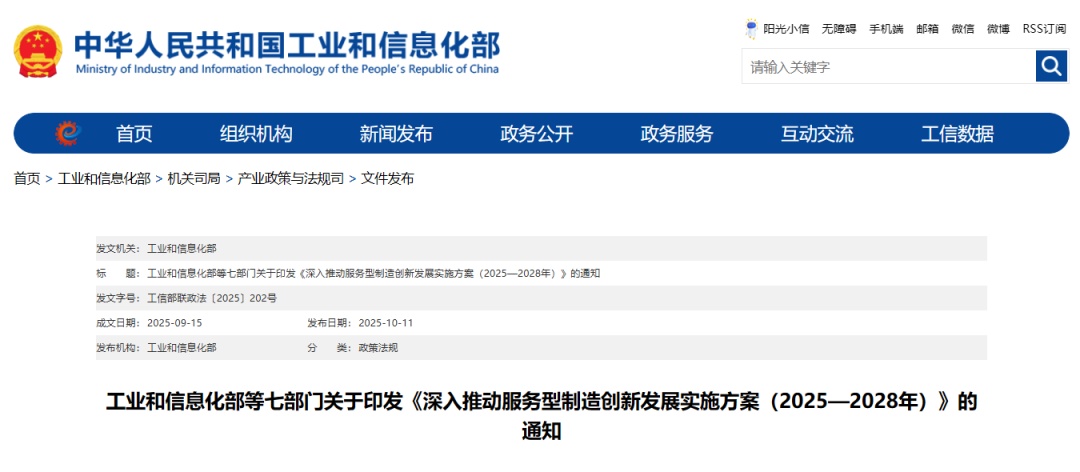 工业和信息化部等七部门关于印发《深入推动服务型制造创新发展实施方案(2025—2028年)》的通知