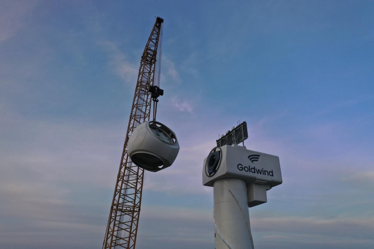 天润大丰风电项目位于江苏省盐城市大丰区,所在地是长三角重要的新能源装备制造中心,拥有丰富的风能资源。据悉,本次吊装的风力发电机组是目前国内单机容量最大的陆上风电机组,由金风科技股份有限公司研发。该风力发电机组轮毂中心高155米,相当于50多层大楼的高度,单支叶片长130米,叶轮直径266米,扫风面积约5.55万平方米,接近8个足球场面积之和。