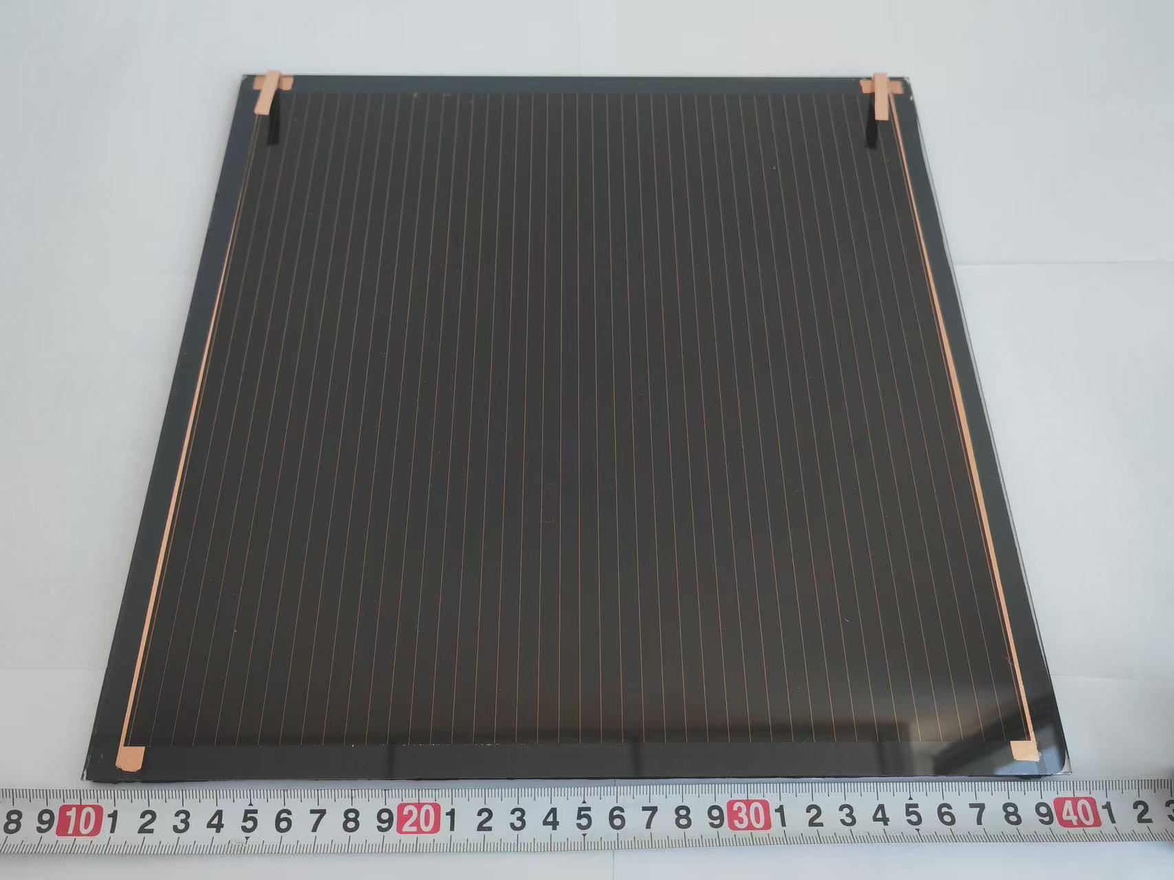 中国工程院院士、南京航空航天大学国际前沿科学研究院教授郭万林团队研制的30厘米*30厘米长寿命钙钛矿太阳能模组。科研团队供图