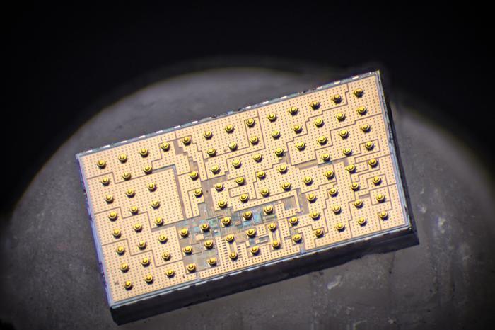 此次研究中,团队开发出一种改进型降压转换器,将压电谐振器与小型商用电容进行特定组合设计,使转换器能够更有效地完成大幅电压转换。研究人员将该设计集成到原型芯片中。测试结果显示,该芯片可将48伏电压降至4.8伏,峰值效率达到96.2%,输出电流能力约为此前压电设计的4倍。