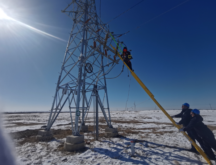 ▲小邬邓风电场工作人员正在处理高压跌落保险三峡能源供图
