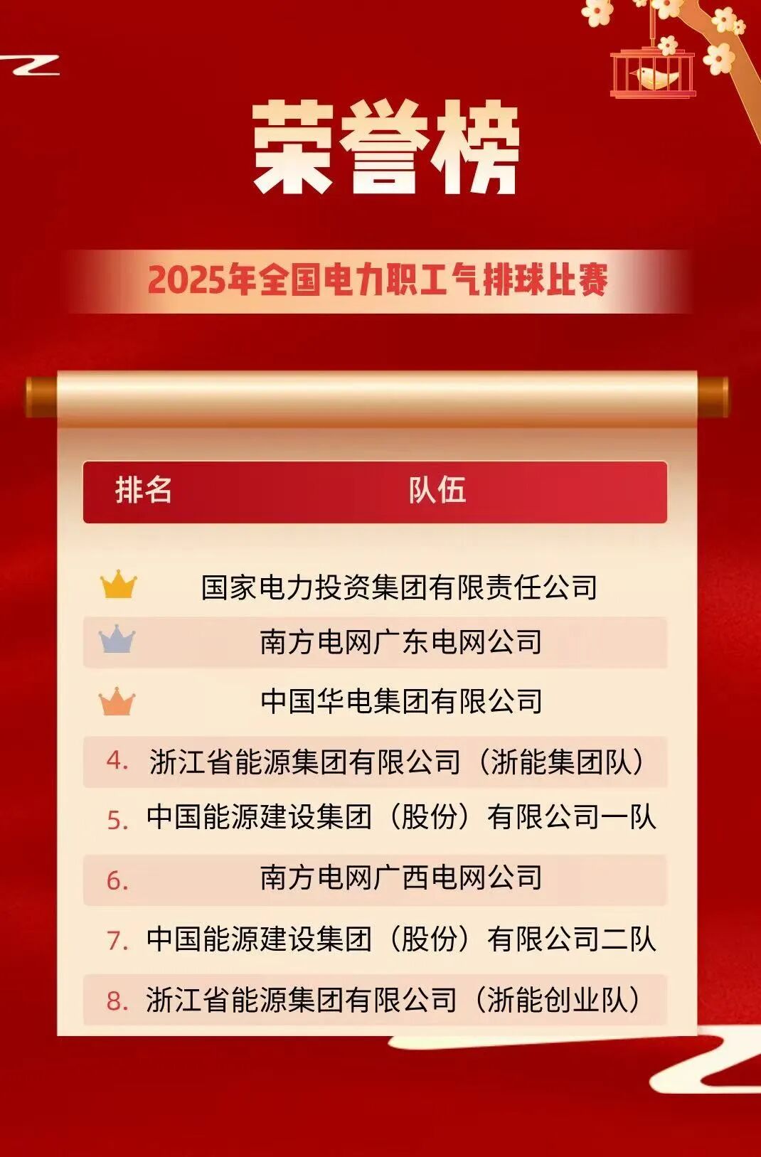 4月12日,在电力体育协会成立70周年之际,由中国电力企业联合会指导,电力体育协会主办,浙江省能源集团有限公司承办的2025年全国电力职工气排球比赛在杭州圆满落幕。