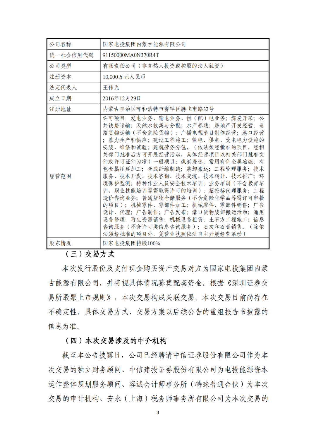 5月5日晚间,国家电投旗下电投能源发布《关于筹划发行股份及支付现金购买资产并募集配套资金暨关联交易事项的停牌公告》,公告称,国家电投拟以国家电投集团内蒙古白音华煤电有限公司股权与电投能源进行资产重组。
