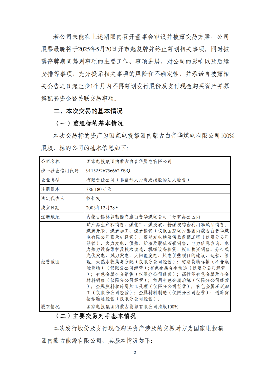 电投能源股票自2025年5月6日(星期二)开市时起停牌,停牌日期自2025年5月6日起不超过10个交易日。