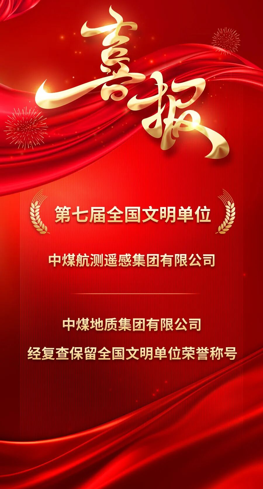 5月23日,全国精神文明建设表彰大会在北京召开,中央宣传思想文化工作领导小组公布第七届全国文明单位名单,总局煤航集团荣获全国文明单位称号,地质集团复查确认继续保留全国文明单位称号。