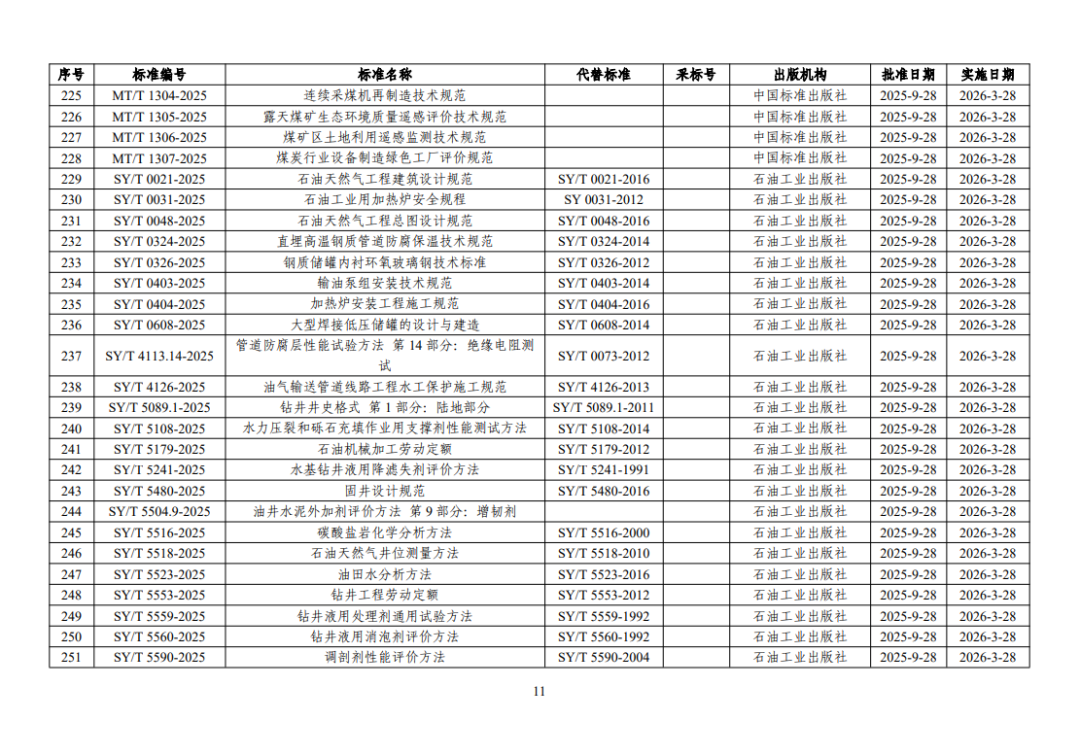 附件: 1.行业标准目录