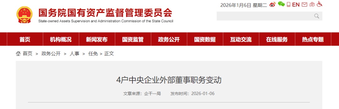 来源:国务院国资委官网 时间:2026-01-06 15:30