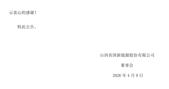 王炜刚辞去山西省国新能源股份有限公司(以下简称“国新能源”)副总经理职务。