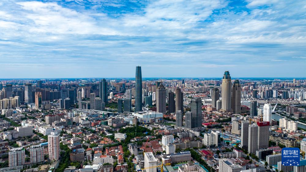 这是8月28日拍摄的天津市中心城区街景(无人机照片)。新华社记者赵子硕摄
