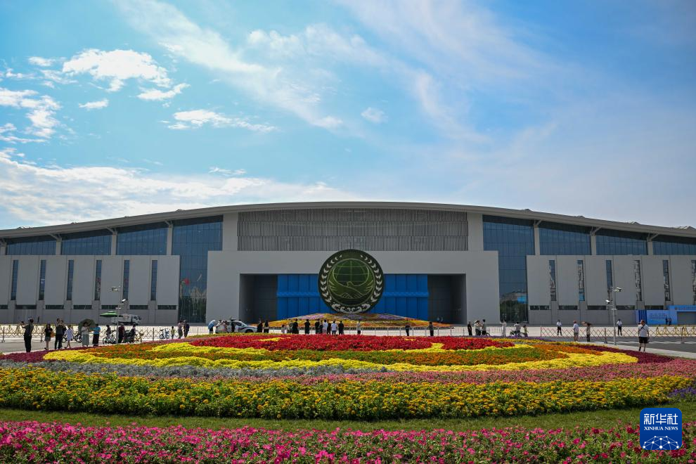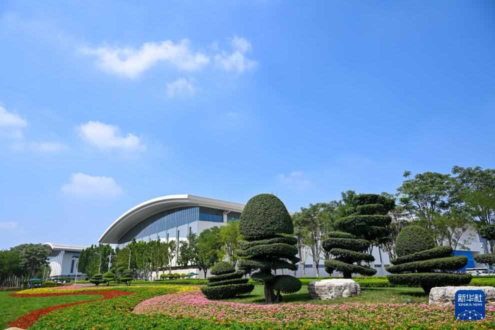 这是9月1日拍摄的天津梅江会展中心外的花坛。新华社记者孙凡越摄