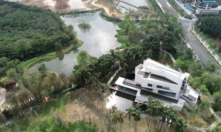 2025年3月27日,广东省佛山市顺德区云鹭湿地公园里的云鹭湿地博物馆已建设完成(无人机照片)。