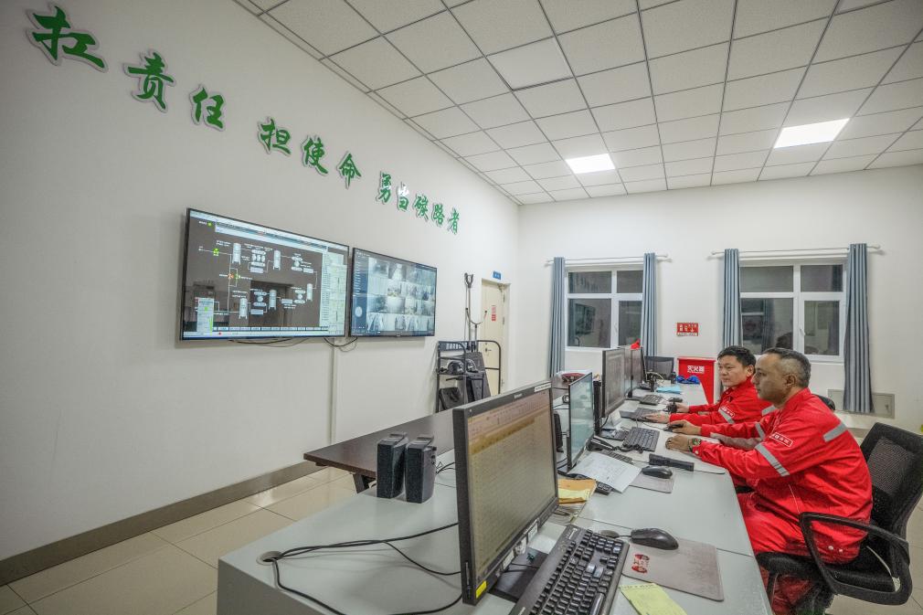12月24日,中国石油新疆油田采油二厂八区530井区二氧化碳混相驱先导试验站在时刻关注注碳情况。新华社发徐志远摄